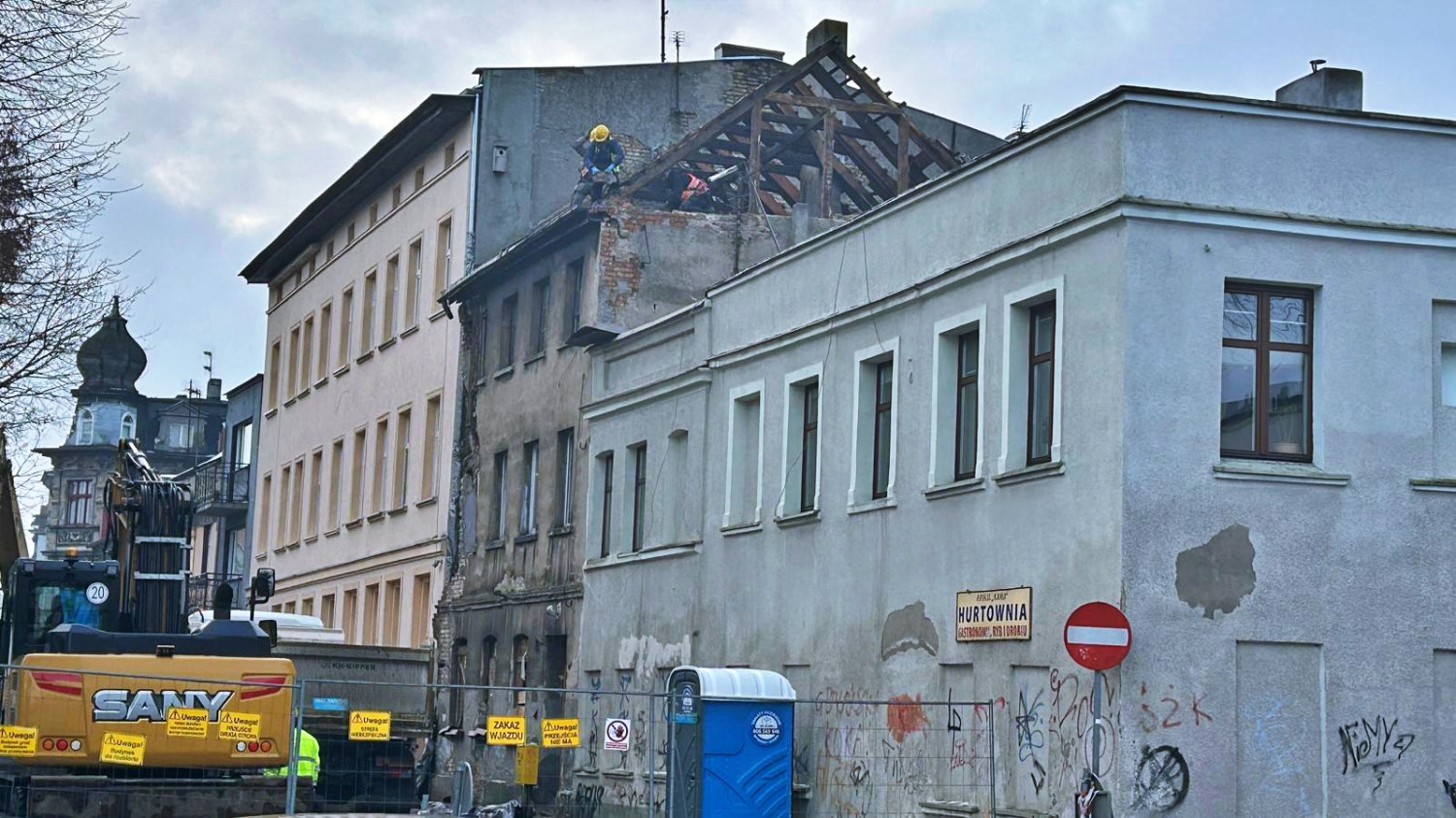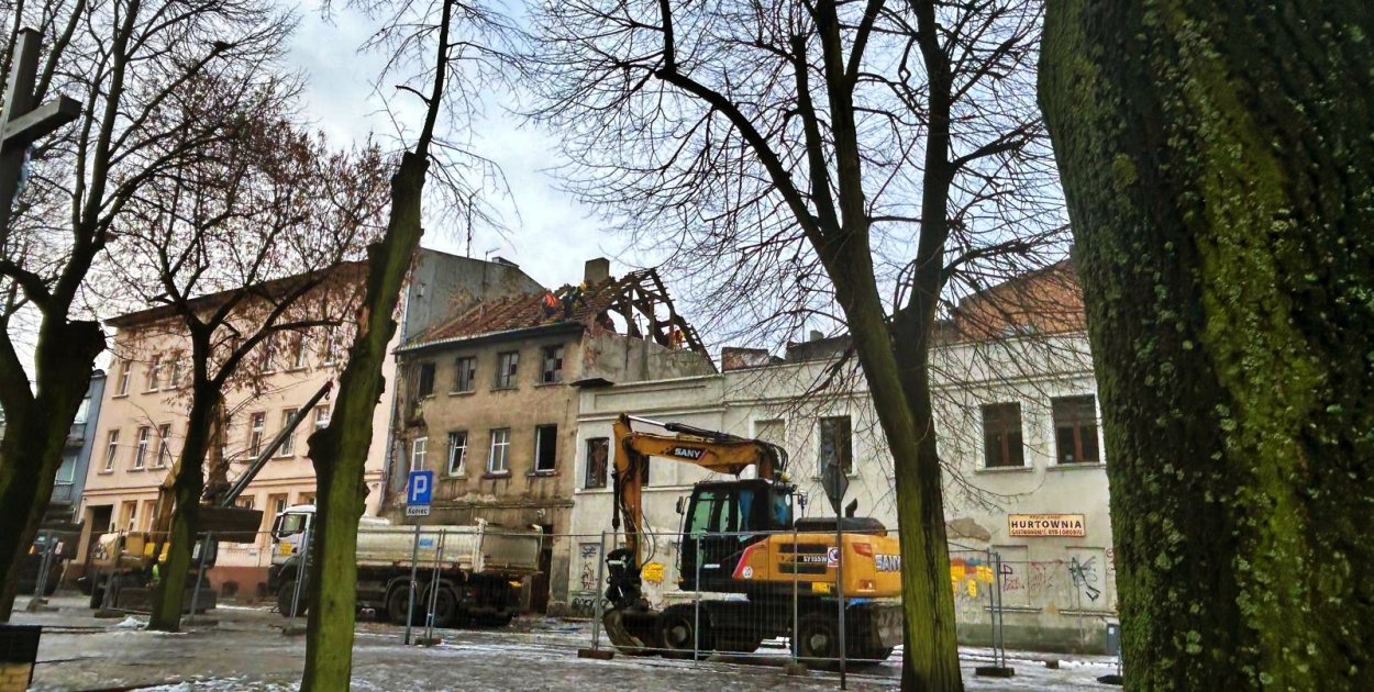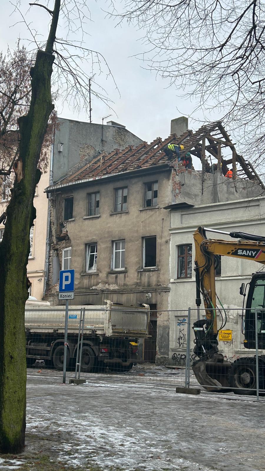 Prace prowadzone są z użyciem ciężkiego sprzętu, a na miejscu działają już ekipy wykonujące wyburzenie obiektu. Kamienica od dłuższego czasu była wskazywana jako niebezpieczna, a jej stan techniczny wymagał podjęcia zdecydowanych działań.