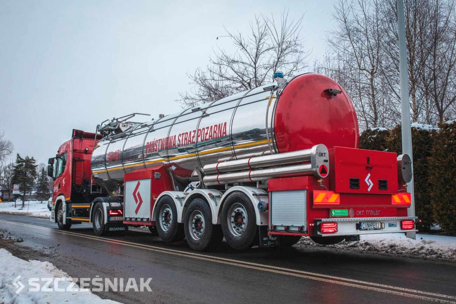 Zestaw składa się z dwuosiowego ciągnika siodłowego Scania G460 A4X2NA, przystosowanego dla straży pożarnej, oraz trzyosiowej cysterny-naczepy.