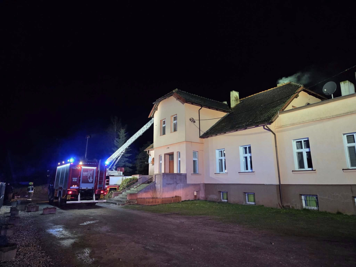 Powodem interwencji był pożar sadzy w przewodzie kominowym – sytuacja szczególnie niebezpieczna, ponieważ ogień w kominie może doprowadzić do pęknięcia przewodu, a nawet pożaru całego budynku.