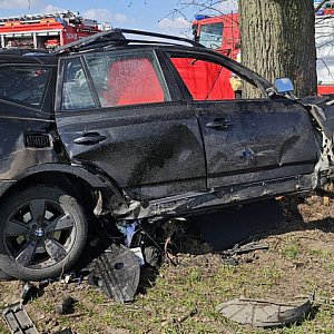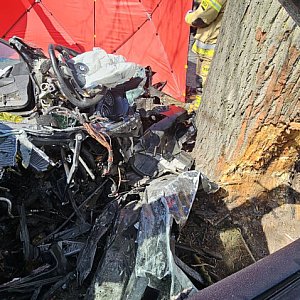 Po przybyciu na miejsce służby zastały samochód osobowy, który uderzył w przydrożne drzewo. W pojeździe znajdowała się jedna osoba poszkodowana, zakleszczona wewnątrz wraku.