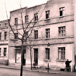 Fot. 6 i 7 - Kamienica w latach okupacji z widocznym oknem wystawowym piekarni. Dla ścisłości - piekarnia zlokalizowana była w kamienicy nr 30. Z analizy zdjęć wynika, że ów Niemiec mógł nazywać się Karl Weiss, ale nie jest to w 100% pewne. Zdjęcia ze zbiorów Archiwum Państwowego.
