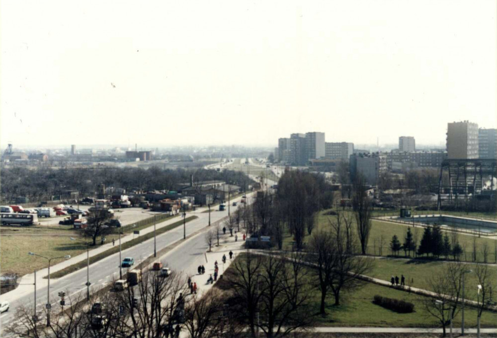 Patrząc na fotografię wykonaną z wieży ratusza w roku 1993, trudno nie zauważyć, jak na przestrzeni bez mała ćwierćwiecza zmienił się ten rejon miasta.