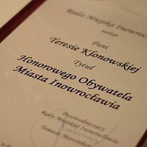 O przyznanie Teresie Klonowskiej tytułu Honorowego Obywatela Miasta Inowrocławia wnioskował inowrocławski Klub Inteligencji Katolickiej.