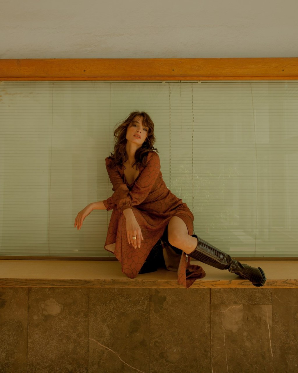 Jak sama nazwa wskazuje, jest to sukienka w kolorze czekoladowym, która wyróżnia się przede wszystkim za swój wzór — w żyrafę. Każda Mary Jane występuje w tym samym fasonie i kroju, czyli ma głęboki dekolt, długie rękawy, rozcięcie na nodze oraz jest długości midi. Przepięknie będzie prezentować się z oversizowymi marynarkami i ciepłymi, krótkimi swetrami. W opcji na wieczór — wybierz marynarkę i czarne długie kozaki, natomiast w opcji basic, czyli na co dzień, postaw na sweter i trampki, jak zrobi się już cieplej!