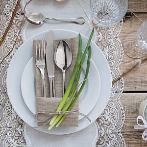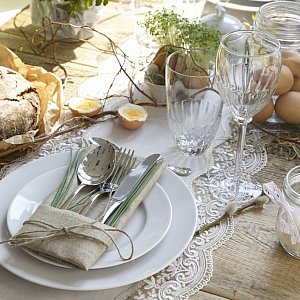 Ten styl lubi to, co naturalne. Dlatego wybierając stół do jadalni, warto zastanowić się nad stołem z prawdziwego drewna. Jeśli jesteśmy szczęśliwymi posiadaczami tak pięknego mebla, możemy pomyśleć o aranżacji w stylu rustykalnym. Przede wszystkim zapomnijmy o obrusie. Przyda się natomiast prosty bieżnik, najlepiej utrzymany w odcieniu czystej bieli i z haftem nawiązującym do polskiej tradycji ludowej. Niemniej ważna jest porcelana stołowa, która sama w sobie powinna stanowić dekorację stołu. Myśląc o dodatkowych ozdobach postawmy na minimalizm. Doskonałym pomysłem będą zioła, które nie tylko pięknie pachną, ale są też dekoracją stołu, będą prezentować się niezwykle oryginalnie.