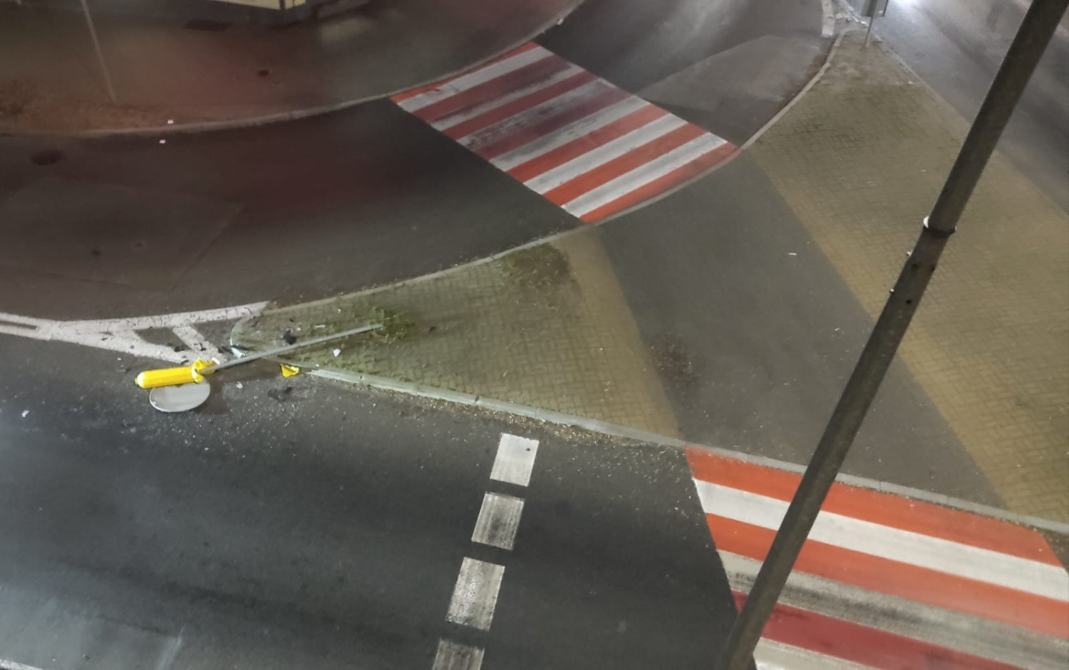 Najprawdopodobniej wskutek niezapanowania nad pojazdem ktoś ściął autem w znak na wysepce przy Rondzie Solidarności od strony ul. Najświętszej Marii Panny.