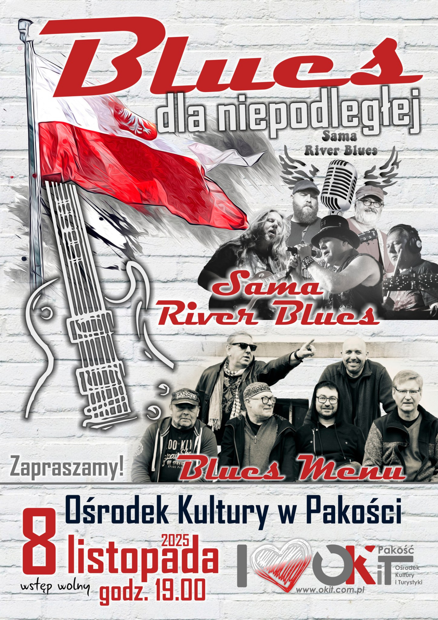 W Ośrodku Kultury w Pakości odbędzie się koncert „Blues dla Niepodległej”. Wydarzenie zaplanowano jako muzyczne upamiętnienie walki o odzyskanie wolności. Publiczność usłyszy dwa zespoły – Sama River Blues oraz Blues Menu.