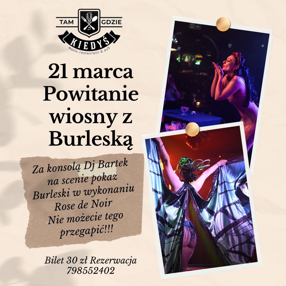 Z kolei 21 marca odbędzie się powitanie wiosny z burleską. Na scenie pojawi się Rose de Noir, która zaprezentuje pokaz burleski, a za muzyczną oprawę wieczoru odpowiadać będzie DJ Bartek.