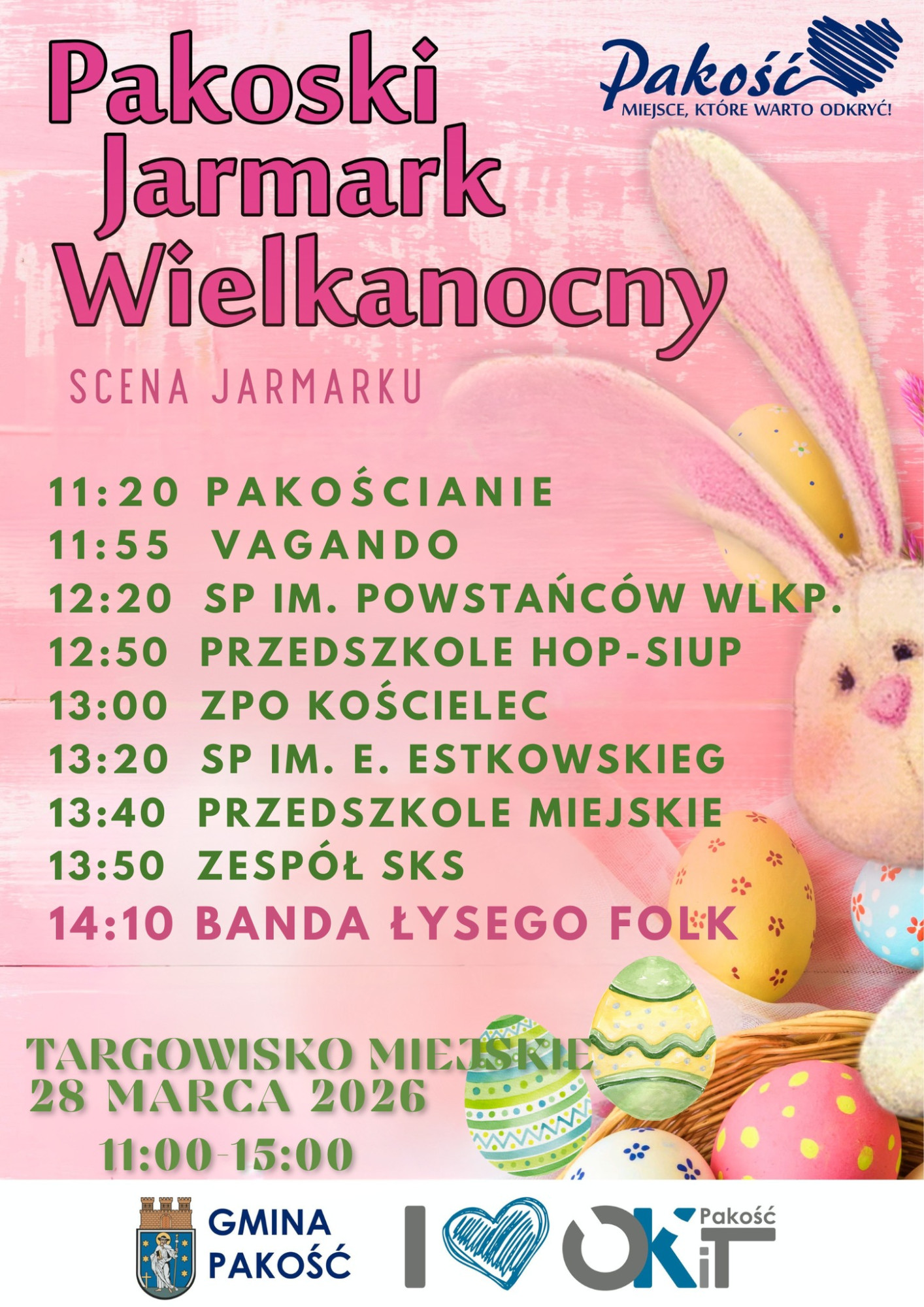 W najbliższą sobotę na Targowisku Miejskim w Pakości odbędzie się Pakoski Jarmark Wielkanocny. Wydarzenie zaplanowano w godzinach 11:00–15:00.