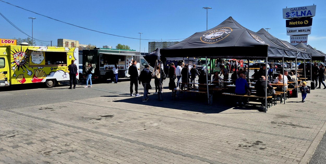 Na miejscu czeka kilka food trucków i różnorodne kuchnie. Od klasycznych burgerów i frytek, po bardziej oryginalne propozycje. Nie brakuje też luźnej atmosfery sprzyjającej spotkaniom ze znajomymi.