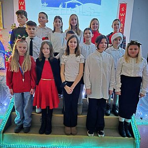 Uroczystość wzbogaciły także występy uczniów klas młodszych oraz najmłodszych, które wprowadziły świąteczny klimat. Całość dopełniło wspólne kolędowanie, podkreślające integrację i zaangażowanie szkolnej społeczności.