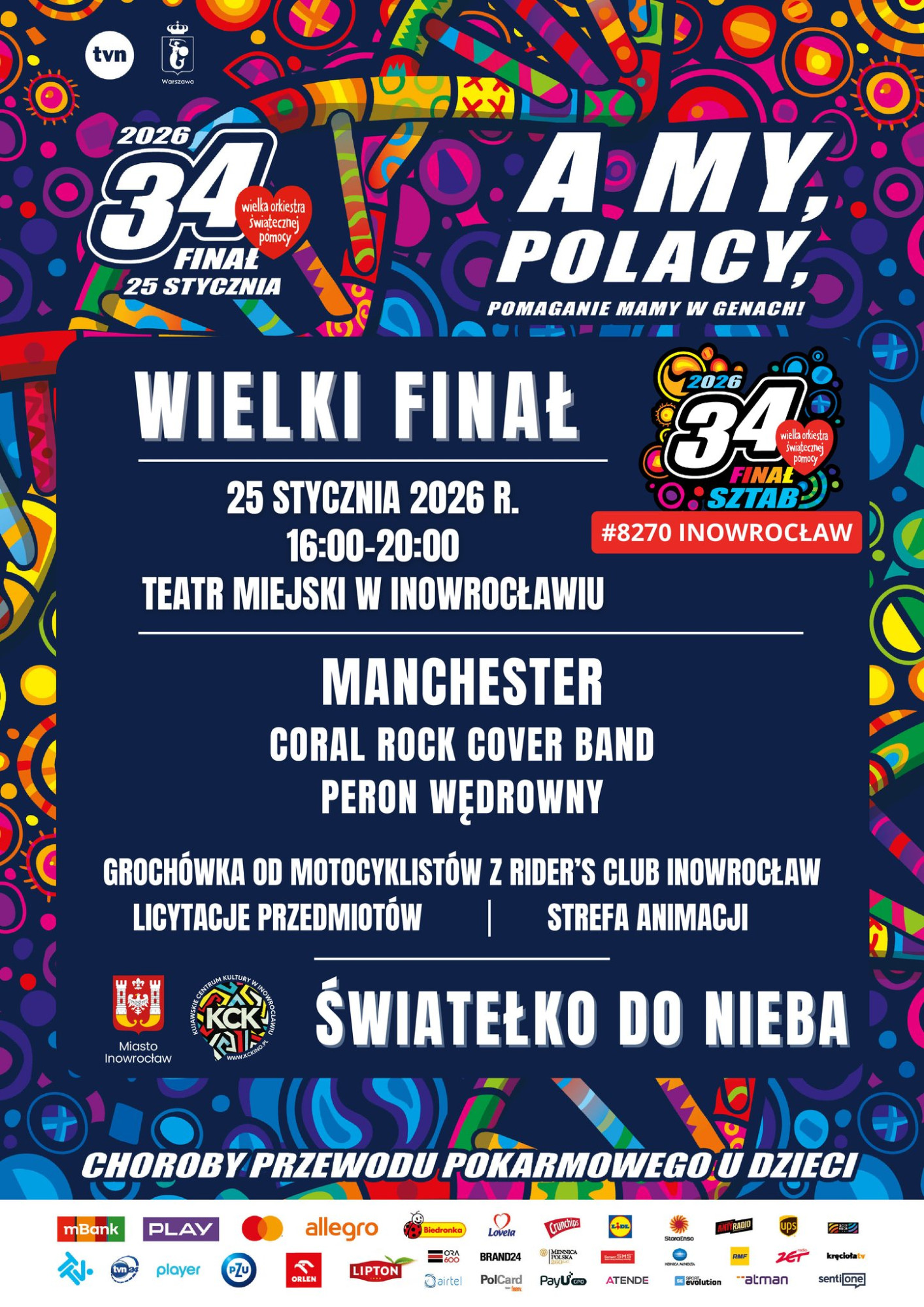Wieczór zakończy się wspólnym finałowym akcentem. Punktualnie o 20:00 rozbłyśnie „Światełko do Nieba”, zamykając wydarzenie w Inowrocławiu.