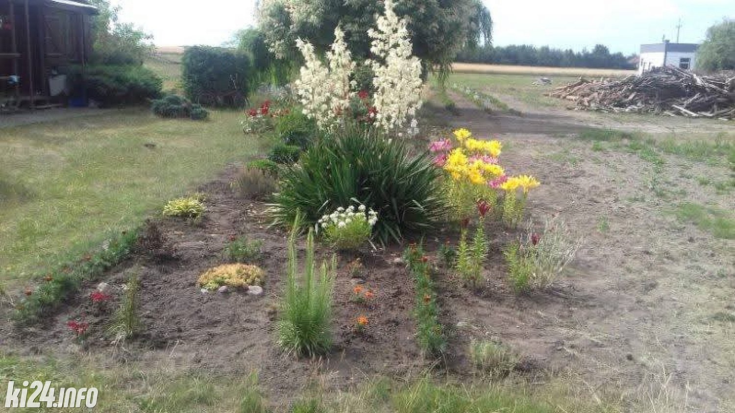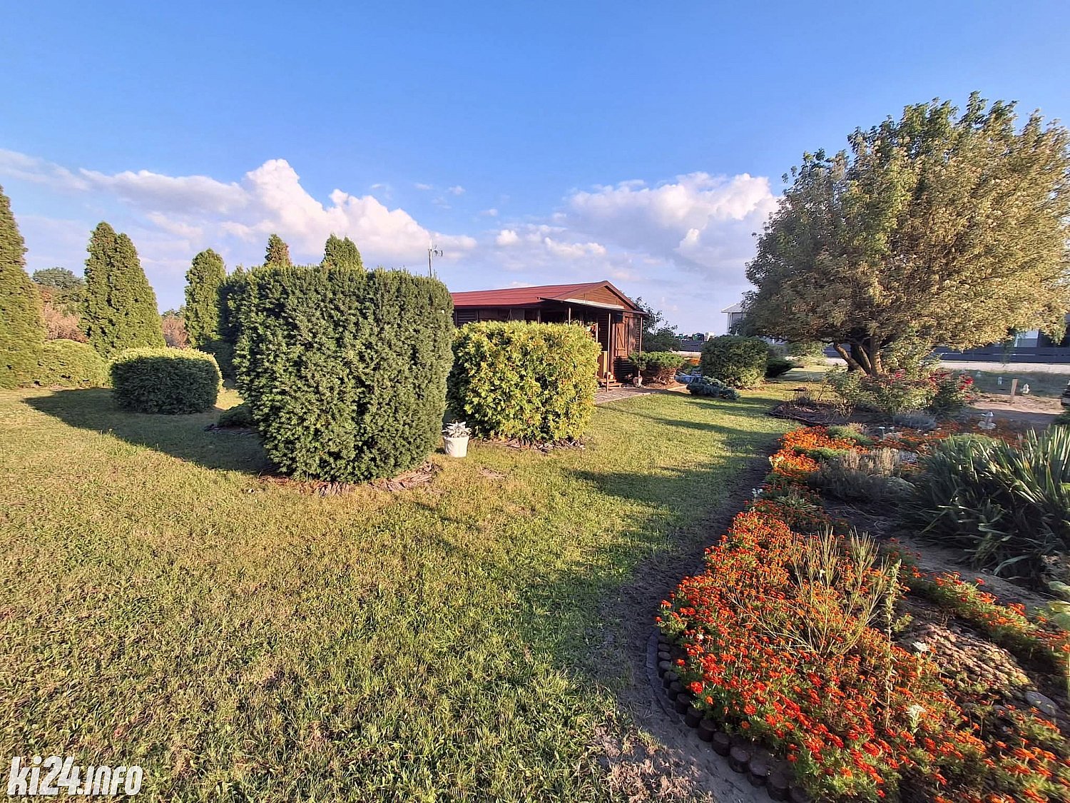 Działka zagospodarowana: tuje, krzewy i inne.