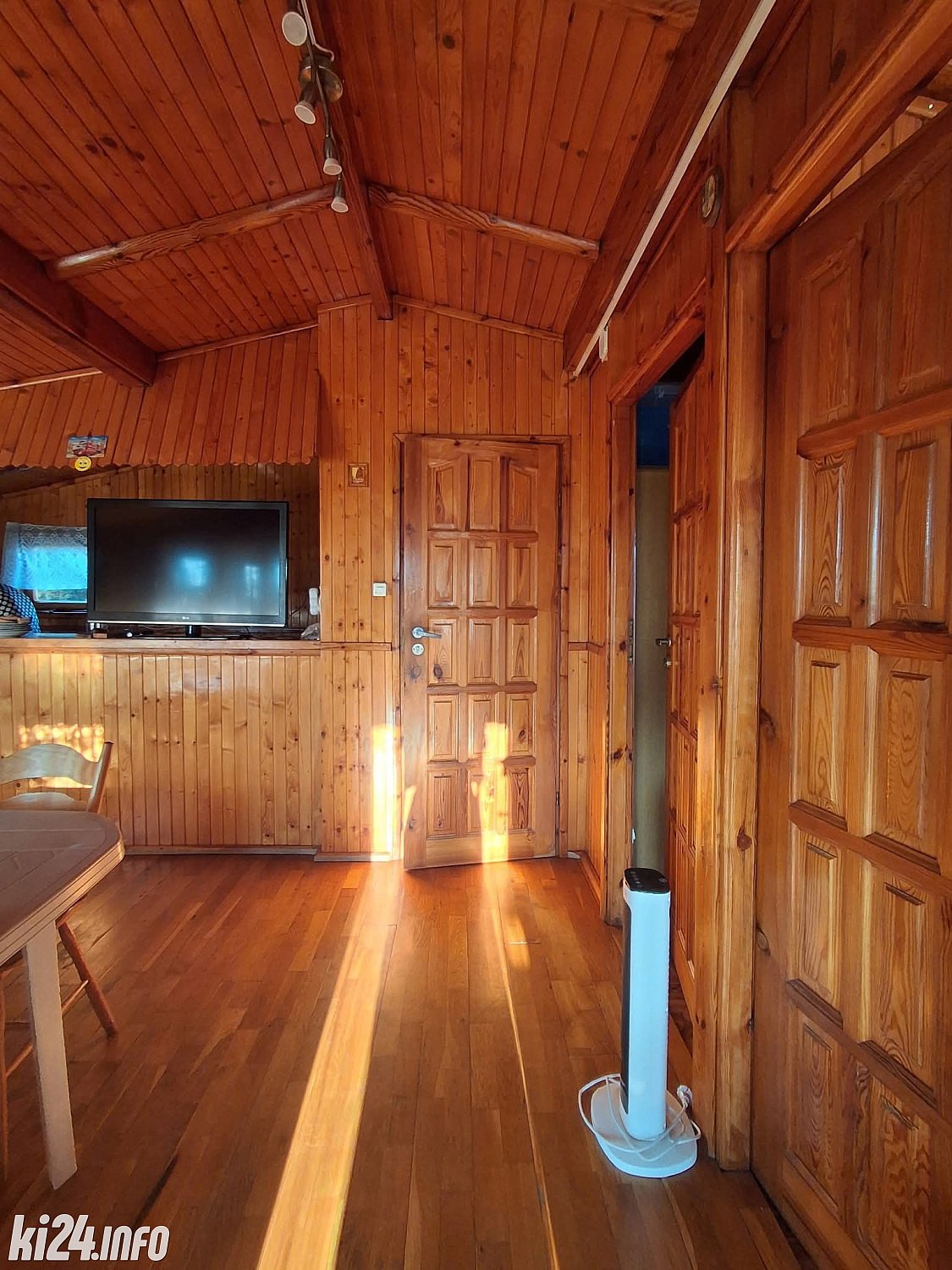 Domek posiada salon z aneksem kuchennym, 2 pokoje i łazienkę z prysznicem.