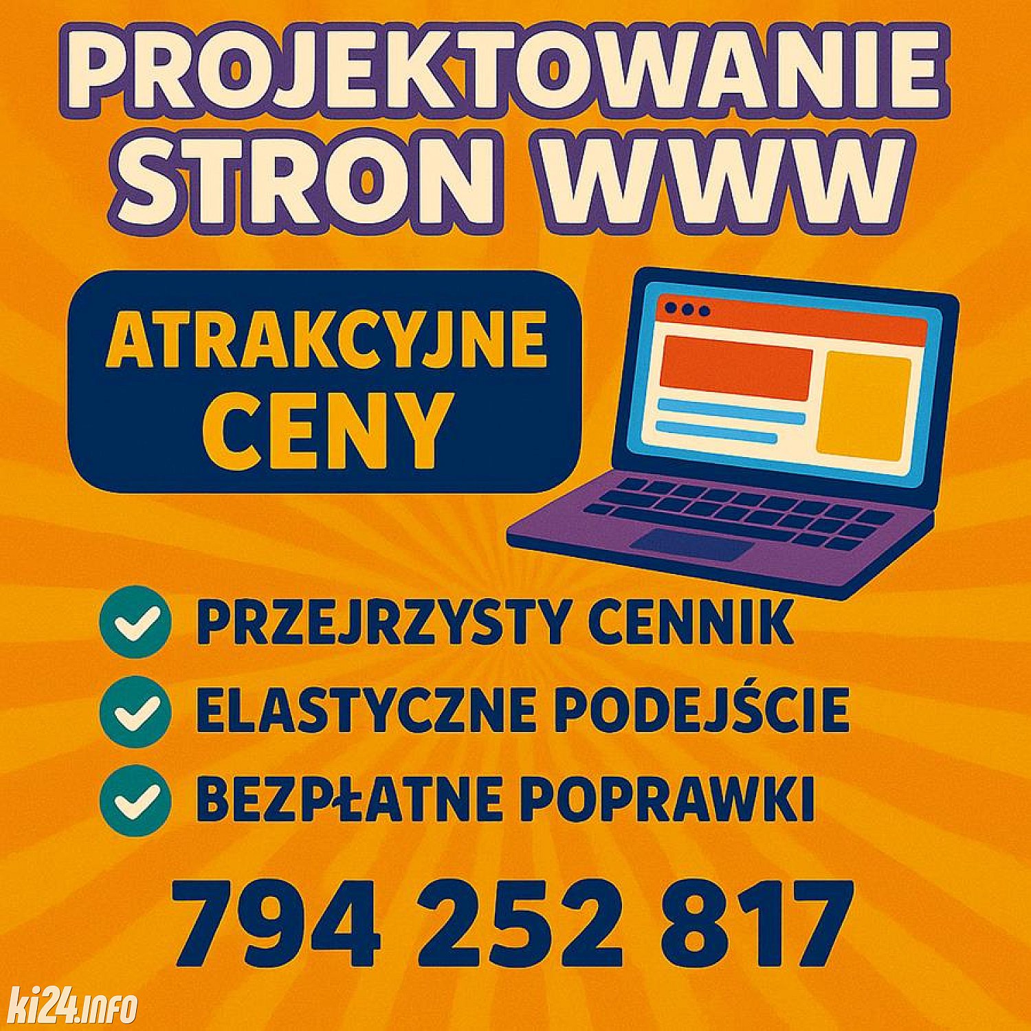 * Transparentny cennik - żadnych ukrytych kosztów. Wszystko, co potrzebne do uruchomienia strony, jest wliczone w cenę.