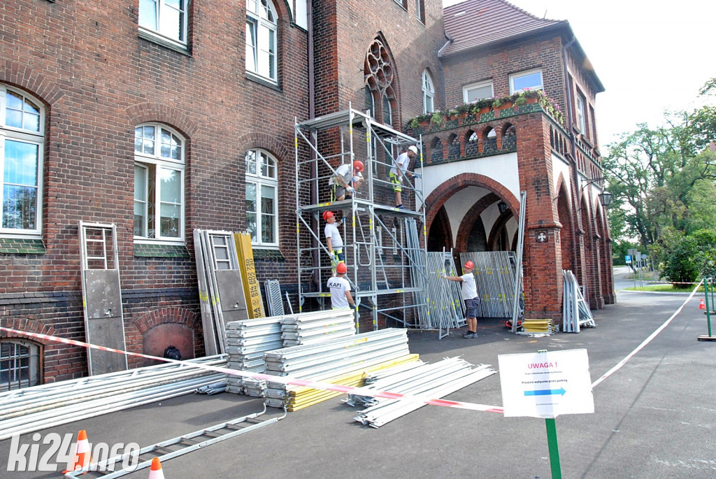 Dziś rozpoczęto prace związane z remontem wieży ratuszowej. Rozkładane są rusztowania i zabezpieczono teren wokół niej. Odnowione zostaną blendy wieży i skontrolowany jej stan techniczny. Na czas remontu wejście do Urzędu Miejskiego oraz Starostwa możliwe jest tylko od strony parkingu.