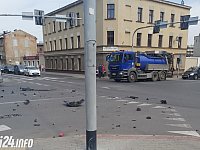 Dziś po południu na polu w pobliżu Sławska Wielkiego doszło do groźnego pożaru. Z nieustalonych na razie przyczyn ogień całkowicie strawił ciągnik rolniczy wraz z przyczepą. Kierujący pojazdem został mocno poparzony.