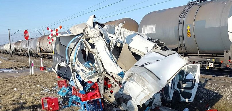 Auto dostawcze wjechało pod pociąg towarowy na niestrzeżonym przejeździe kolejowym. Kierowca i maszynista nie odnieśli obrażeń, ale skala zdarzenia wyglądała bardzo poważnie. Okoliczności wypadku wyjaśniają służby.